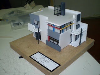 Fizemos cópias das plantas, cortes e fachadas e começamos a maquete que deu bastante trabalho devido a seu aspecto recortado e detalhado.